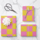 Pink Yellow Chequered Pattern Wrapping Paper Sheet
