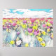 Pink Yellow Field of Tulips Retro Drawing Poster
