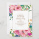 Elegant and colourful pink, blue, and yellow watercolor floral with gold glitter on a white 100th birthday party invitation for women. Contact the designer for help with customisation or to request matching or coordinating products. The text on this card is completely customisable and can be designed for a party celebrating anyone of any age.