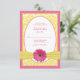 The text on this pink lemonade gerbera daisy, lemon yellow floral damask wedding reply card is fully customisable. To change the text, use the personalise options. For more extensive changes to the rsvp card, including changing the font, font colour, font size, or text placement, use the customise it option. This is a pretty pink lemonade and lemon yellow wedding reply card. Great for a spring or summer wedding with a pink and yellow theme or a gerber daisy theme. With changes to the text, this could be used as a direction, reception, and/or accommodation card.