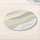 Pink Yellow Green Curved Stripe Abstract Wave Name Round Paper Coaster