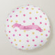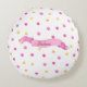 Pink & Yellow Polka Dot Name Banner Girly Cute Round Cushion