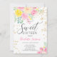 Pink yellow roses floral script sweet 16 birthday party typography with pretty painted floral watercolor, gold glitter confetti sparkles. Contact me you you would like to change the sweet 16 text. Add your photo at the back