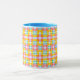 A cool pattern in Spring type colours, of pink Squares, with blue and yellow and white in the grid as well!