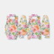 This is a watercolor pattern of lush pastel pink, yellow, white and orange roses with green and teal leaves and small white and light blue flowers on a white background.