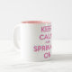 A good pink Zebra home fragrances moto. Just Keep calm and Sprinkle on reminding us to keep our head up. it's a white coffee cup with a light pink on the inside and the moto on the outside
