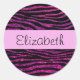 Pink Zebra, Glitter Zebra, Zebra Print, Your Name Classic Round Sticker
