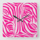 Pink zebra print square wall clock