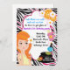 Pink Zebra spa party invitation with a pretty girl flowers and beauty products.