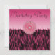 Pink Zebra Stripes Flower & Pearls Birthday Party Invitation