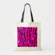 Pink zebra tote with decorative yellow flower accents and black handle straps.