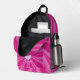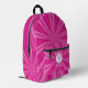 Backpack features a Christian cross made of bright pink zig-zags. Both fun and edgy. Sort of hard rock feminine. Shows on a white, fractal circle which is on a bright or hot pink circular background fractal sunburst. Customise by adding your name to the GOD BLESS for a special backpack for yourself or a gift.
