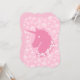 This strange design features an undead, zombie unicorn with a garland of skulls against a cute pink background with a faint skull pattern.