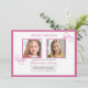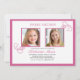 Oh how the time flies! This pretty two-photo invitation allows you to feature a photo from yesteryear and a current photo. The white background has two hot-pink flourish and is framed in hot pink. The card is easy to customise with your wording, font, font colour and choice of six paper types.