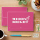 These vibrant pink money envelopes feature the word "Merry & Bright" in white over a vibrant fuchsia pink background. The envelope opens to reveal a pink and green candy cane stripped pattern. A unique choice for cash gifts for the holidays. Order small quantities or bulk orders for employee bonuses.
