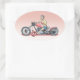 A biker chick on a stretched motorcycle drawing with digital colour. T-shirts, sweats, cards, prints, novelty gift swag.