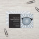 Strong rays burst out behind the left side of a pair of sunglasses. The grungy rays in slate blue are shielded with the tinted lens. Your customised information right aligns against the black. Add your web information along with any other important information on the back. Available in alternate colours with matching products.