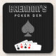 © Sunny Mars Designs - Pinstripe Suit: Poker Den Classic Playing Cards - Stylish, cool casino poker club custom printed square plastic and cork drink coasters with a masculine black and grey pin stripe pattern design, a a set of four aces and a clubs symbol. Perfect for game night and a boys' night in. Personalise it by adding your own name or other text.