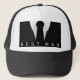 © Sunny Mars Designs - Pinstripe Suit: Black and Gray Best Man's Trucker Hat - Custom wedding party attendant bachelor party bestman or best man hat or cap with a formal black and gray pinstripe suit, white shirt and black neck tie. Perfect gift for your best man, groomsman, usher, ring bearer or any male in your wedding party.