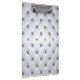 White pintucked leather with a metallic or pearlized sheen, dotted with gold beads. Personalise on the back if you wish.