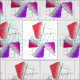 This pattern features a deconstructed pinwheel with abstract lines and gradient color. The main colors are gray, purple, pink/red, and white.