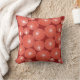 This throw pillow has a mid-century modern design of red circles with white starbursts in them, all on a field of brick.