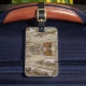 I was happy with the acrylic tag but it came with a thin leather strap to attach the tag to luggage (like a cat collar). I replaced the strap with a metal ring off of a key ring as the leather strap would come undone or break easily as luggage is sometimes handled without much care by airlines. Printing is great. Colours and positioning of the design I put on the tag were perfect. Very pleased.