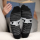 I love these Mona Lisa Christmas Socks! They are soft and very comfortable. The print looks great, on all sides including the most stretched area around my calf.