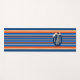 Royal blue, orange and navy blue colorway with orange back. Vintage surfboards of the sixties and seventies were all about stripes and inlaid faux woods. Our yoga mat design is reminiscent of those surfboards which were so popular on the North Shore of Oahu, Hawaii. We combined faux maple wood and added competition stripes and our North Shore Longboard Surfing Club logo and comes in several colour ways.The mat reverses to a bright solid colour.