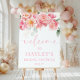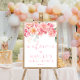 This bridal shower welcome sign features a blush pink peony spring floral design. The script heading is an image that cannot be edited. All of the other text is fully editable. For more advanced customisation of this design, simply select the "Customise It" button above.