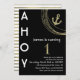 Pirate 1st Birthday Faux Gold Anchor Nautical Invitation
