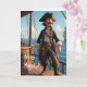 This fun birthday card features a pirate standing on the deck of a pirate ship.