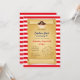 A fun Pirate Party Invitation in a red and white colour scheme, featuring a treasure map and pirate illustration and a striped background. Perfect for little boys' and girls' birthday parties!