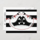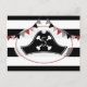 A birthday postcard invitation featuring an illustration of a pirate hat and bunting. Background is black stripes. Personalise all text.