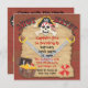 Ahoy Matey! Invite your friends to this super cute pirate party invitation with photo insert. Just replace your little guy or girl's photo with the one pictured here. Rustic red plank background with old worn paper and pirate skull, treasure chest and swords. Hand drawn illustration by McBooboo