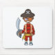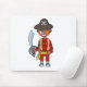 A boy wearing a pirate costume with an eye patch and holding a sword ready to trick or treat on halloween night.