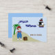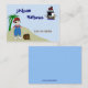 Fun pirate boy calling card / enclosure card, with cartoon graphics of a pirate ship and a pirate boy, with a treasure chest. Ready to customise for your child.