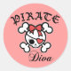 Cute girl's pirate skull and crossbones with a red bow and heart-shaped eye-patch, and, "Pirate - Diva" lettering. T-shirts, hoodies, cards, gifts.