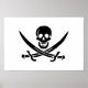 Pirate flag skull and crossed swords Jolly Roger. The flag is associated with John Rackham, commonly known as Calico Jack.