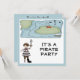 Pirate party invitations feature a blue/green border with a pirate map at the top and a child dressed in a pirate suit sholding a toy sword. Invites are two sided providing plenty of room for personlizing with your own wording. Use the premade wording template to insert all the details of your party. Great for children's birthday party! Plain envelopes included with purchase of invitations.