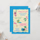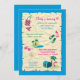 Cute and festive birthday party invitation. This card blends a pirate theme birthday with a pool party theme. Features a treasure hunt map with beach wear. It shows a swimsuit, flip flops, sun block bottle, sunglasses, palm trees and a treasure chest with a pirate skull, all in a girly and cute colour palette. Add your own wording and set the tone for a fun and special celebration.