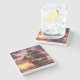 The coasters are gorgeous, a quality feel and heavy weight. They look like a precious archeological find. A rustic stone juxtaposed with a modern floral black and white print. I like the way the print goes slightly imperfect on the cut stone edges giving them a kind-of natural beauty.