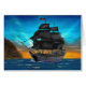 This pirate ship at sea is displayed with a colourful sunset and a view of skull island. Collectors of pirate ships or any clipper ship with bellowing sails will find this both attractive and fine quality artwork.