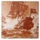 PIRATE SHIP BATTLE IN brown sepia Ceramic Tile