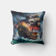 Pirate Ship Battling Stormy Seas at Dusk Cushion