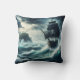 Pirate Ship Battling Stormy Seas Near Island Cushion