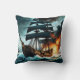 Pirate Ship Engaged in Battle Near Dark Clouds Cushion