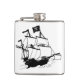 6 oz. vinyl-wrapped flask with an image of a drawing of a black pirate ship flying a skull and crossbones flag on white. See matching candy jar, espresso cup, mug, pitcher, paper plate, shot glass, teapot and coasters. See the entire Shipwreck Flask collection in the FOOD/BEV | Dishes section. Note: The front, unopened display option was photographed by Zazzle with a slight tilt, such that the image appears off centre. The front, opened display option, however, was photographed correctly. Here the image is centred. The image is also centred in the “in situ” display option.