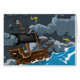 Pirate Ship in Storm. Thunderbolt and Lightening storm. Wooden ship in storm. ARRR Pirate ship!