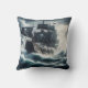 Pirate Ship Navigating Stormy Seas at Dusk Cushion